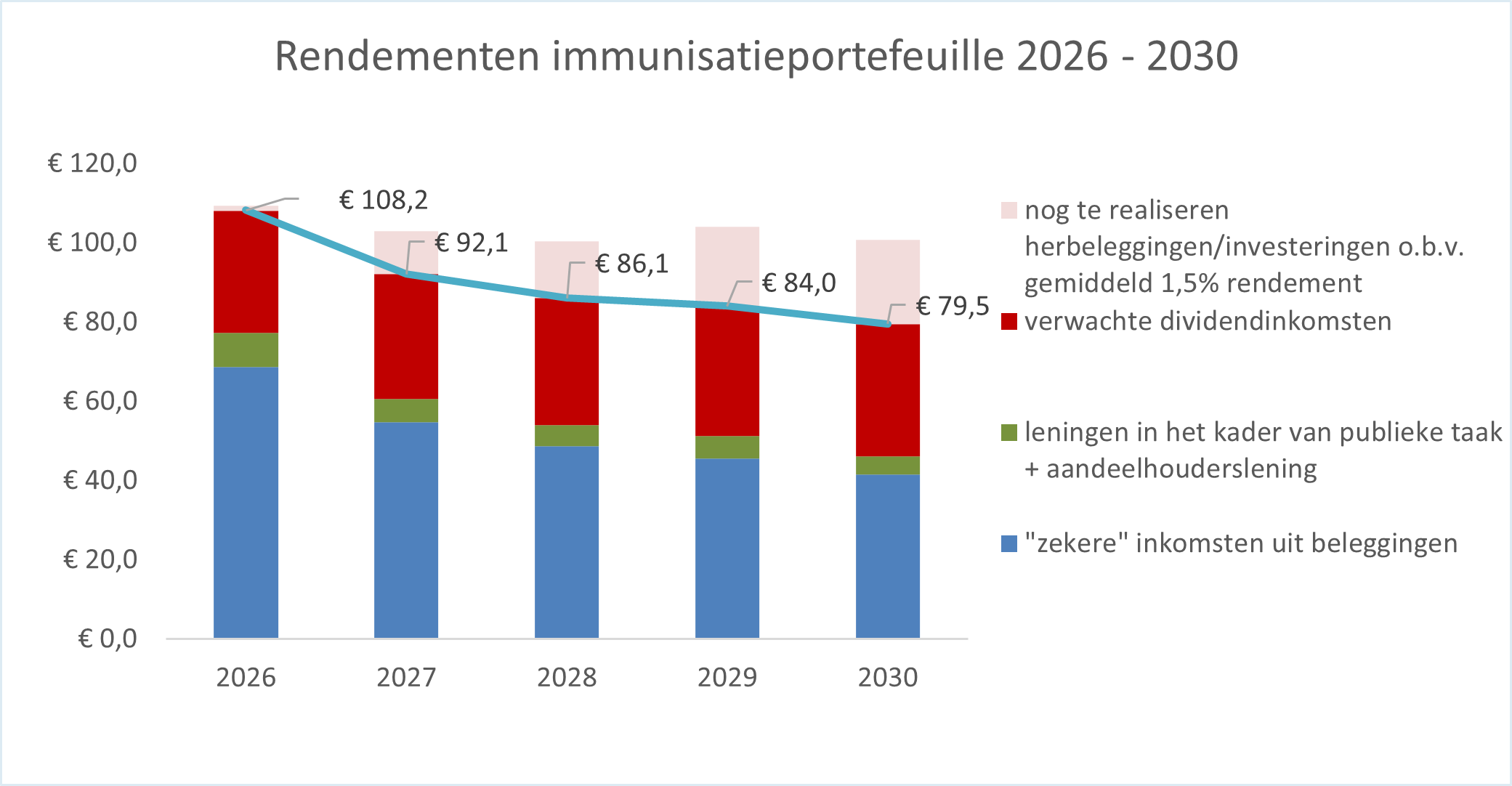 Dividend en rente uit vermogen immunisatieportefeuille (doelstelling 2026: € 76,3 mln.).