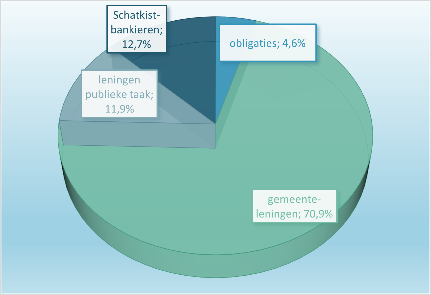 De 10–jaarsrente is in 2025 redelijk stabiel gebleven tussen 2,5% en 3%. Vanwege de relatief hoge rente in 2025 – net als in 2024 – zijn er 18 leningen verstrekt (2024: 20 leningen) aan decentrale overheden voor een totaalbedrag van € 408,0 miljoen (2024: € 423,5 mln.) met een gemiddeld rendement van 2,965% (2024: 2,94%).De korte rente (referentie is de driemaands–euribor) is vanaf augustus 2022 gestegen boven 0%. In 2025 is dit percentage gedaald van 2,74% naar 2,03% einde van het jaar.De ECB heeft via een viertal stappen de rente voor de depositofaciliteit in 2025 verlaagd van 3,0% naar 2,0%, in verband met een dalende inflatie in de eurozone. In Nederland is de inflatie nog relatief hoog in vergelijking met de eurozone. De ontwikkeling van de rente is sinds juni stabiel, mogelijk dat er in 2026 verder verlaagd gaat worden als de inflatie in de eurozone op dit niveau blijft.