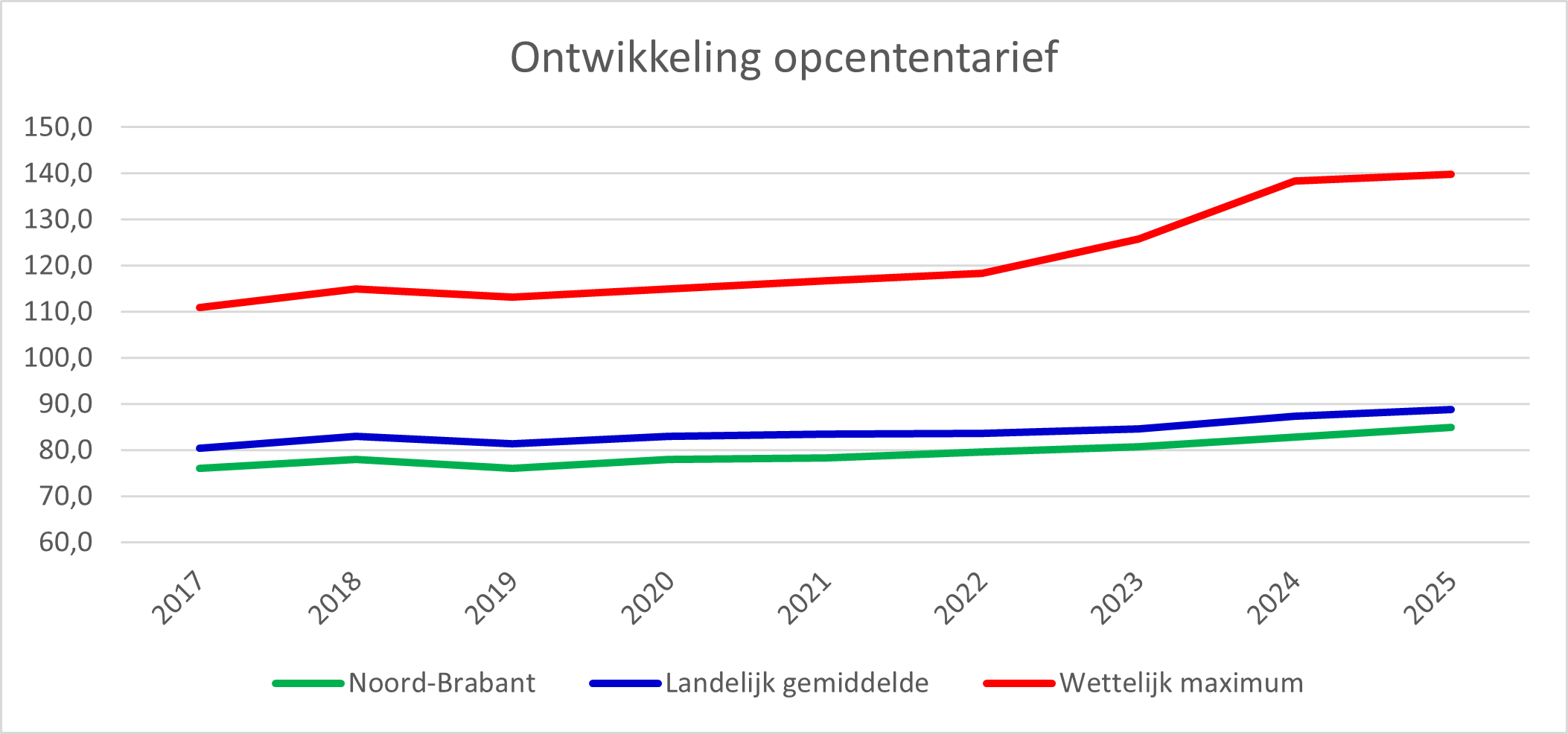 In onderstaande tabel is een vergelijking opgenomen van de vastgestelde opcententarieven van alle provincies.